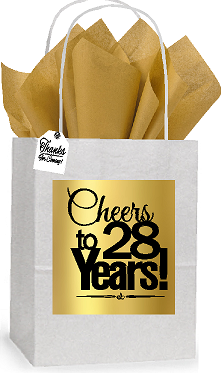 28th Cheers Birthday - Anniversary White and Gold Themed Small Party Favor Gift Bags Stickers Tags -12pack
