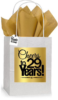 29th Cheers Birthday - Anniversary White and Gold Themed Small Party Favor Gift Bags Stickers Tags -12pack