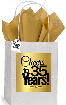 35th Cheers Birthday - Anniversary White and Gold Themed Small Party Favor Gift Bags Stickers Tags -12pack