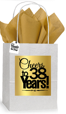 38th Cheers Birthday - Anniversary White and Gold Themed Small Party Favor Gift Bags Stickers Tags -12pack