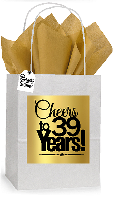 39th Cheers Birthday - Anniversary White and Gold Themed Small Party Favor Gift Bags Stickers Tags -12pack