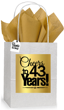 43rd Cheers Birthday - Anniversary White and Gold Themed Small Party Favor Gift Bags Stickers Tags -12pack