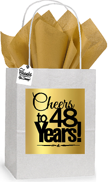 48th Cheers Birthday - Anniversary White and Gold Themed Small Party Favor Gift Bags Stickers Tags -12pack