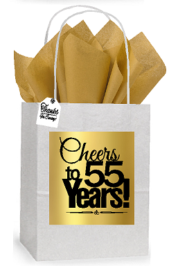 55th Cheers Birthday - Anniversary White and Gold Themed Small Party Favor Gift Bags Stickers Tags -12pack
