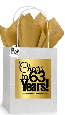 63rd Cheers Birthday - Anniversary White and Gold Themed Small Party Favor Gift Bags Stickers Tags -12pack