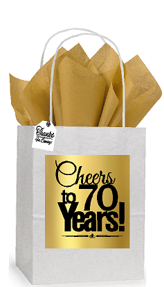 70th Cheers Birthday - Anniversary White and Gold Themed Small Party Favor Gift Bags Stickers Tags -12pack