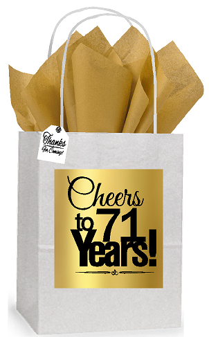 71st Cheers Birthday - Anniversary White and Gold Themed Small Party Favor Gift Bags Stickers Tags -12pack