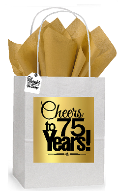 75th Cheers Birthday - Anniversary White and Gold Themed Small Party Favor Gift Bags Stickers Tags -12pack