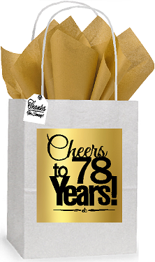 78th Cheers Birthday - Anniversary White and Gold Themed Small Party Favor Gift Bags Stickers Tags -12pack
