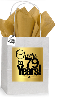 79th Cheers Birthday - Anniversary White and Gold Themed Small Party Favor Gift Bags Stickers Tags -12pack