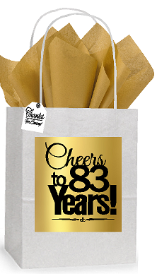 83rd Cheers Birthday - Anniversary White and Gold Themed Small Party Favor Gift Bags Stickers Tags -12pack