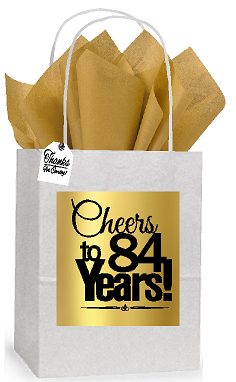 84th Cheers Birthday - Anniversary White and Gold Themed Small Party Favor Gift Bags Stickers Tags -12pack