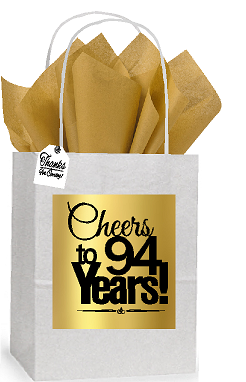 94th Cheers Birthday - Anniversary White and Gold Themed Small Party Favor Gift Bags Stickers Tags -12pack
