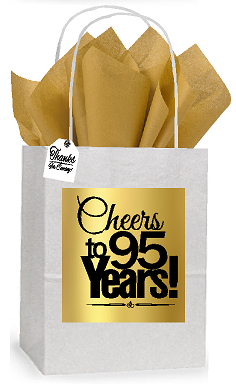 95th Cheers Birthday - Anniversary White and Gold Themed Small Party Favor Gift Bags Stickers Tags -12pack