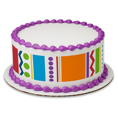 Celebration Image Blocks Circles Dots Swirl Birthday Peel & STick Edible Cake Topper Decoration for Cake Borders