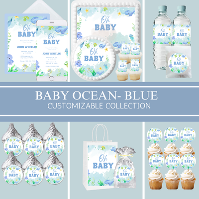 Baby Ocean Blue Party Collection | Edible Cake Toppers, Cupcake Picks, Labels & Favor Bags