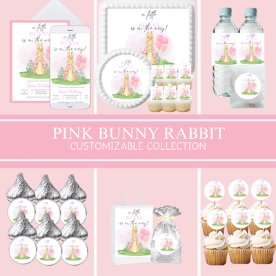 Pink Bunny Rabbit Party Collection | Edible Cake Toppers, Cupcake Picks, Labels & Favor Bags