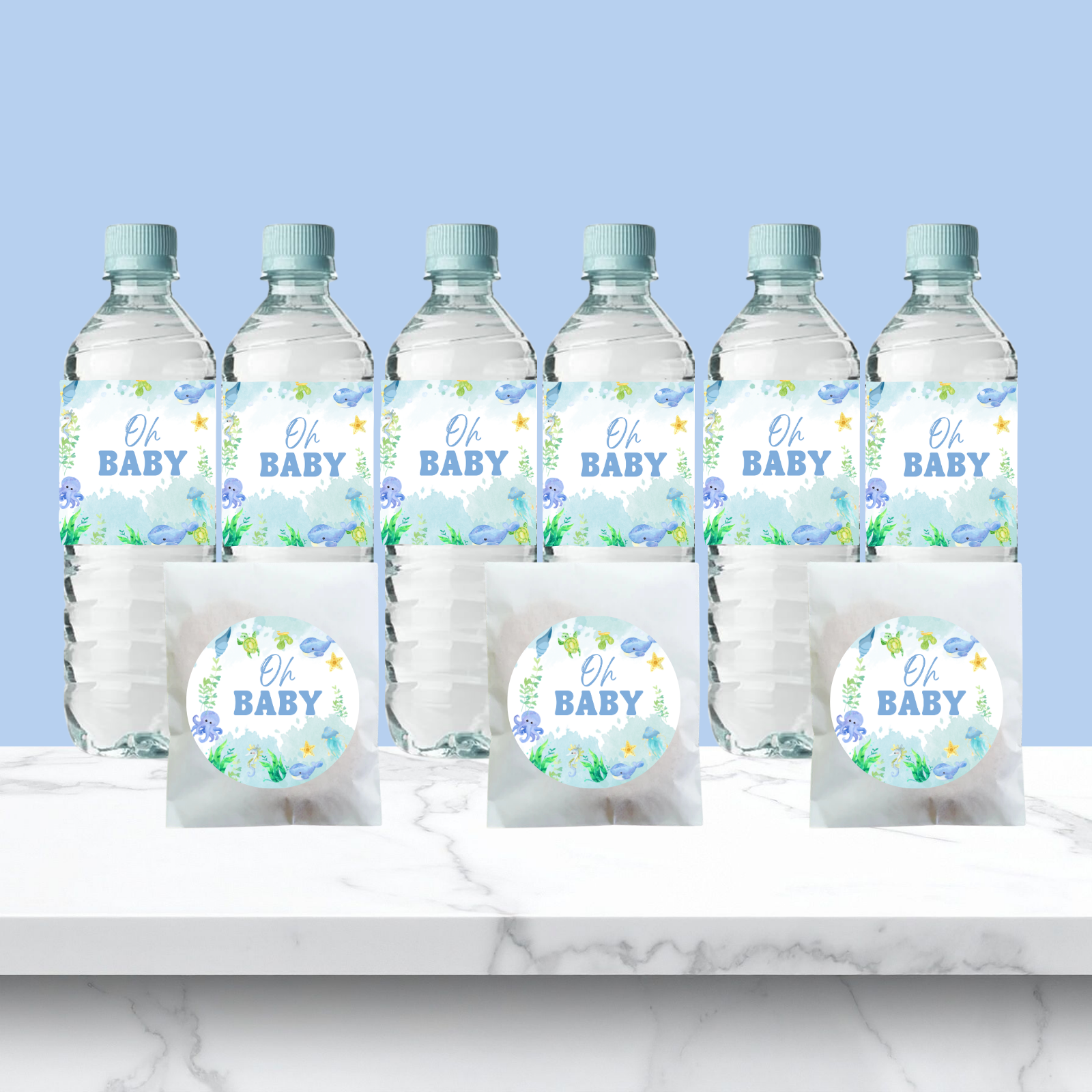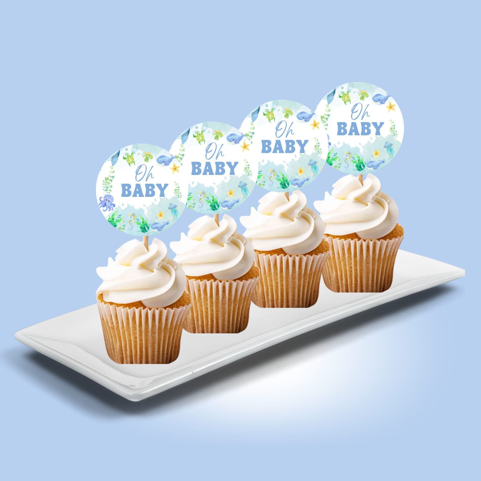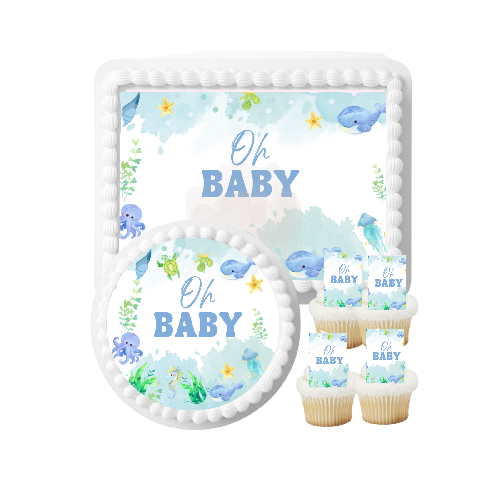 Baby Ocean Blue Party Collection | Edible Cake Toppers, Cupcake Picks, Labels & Favor Bags