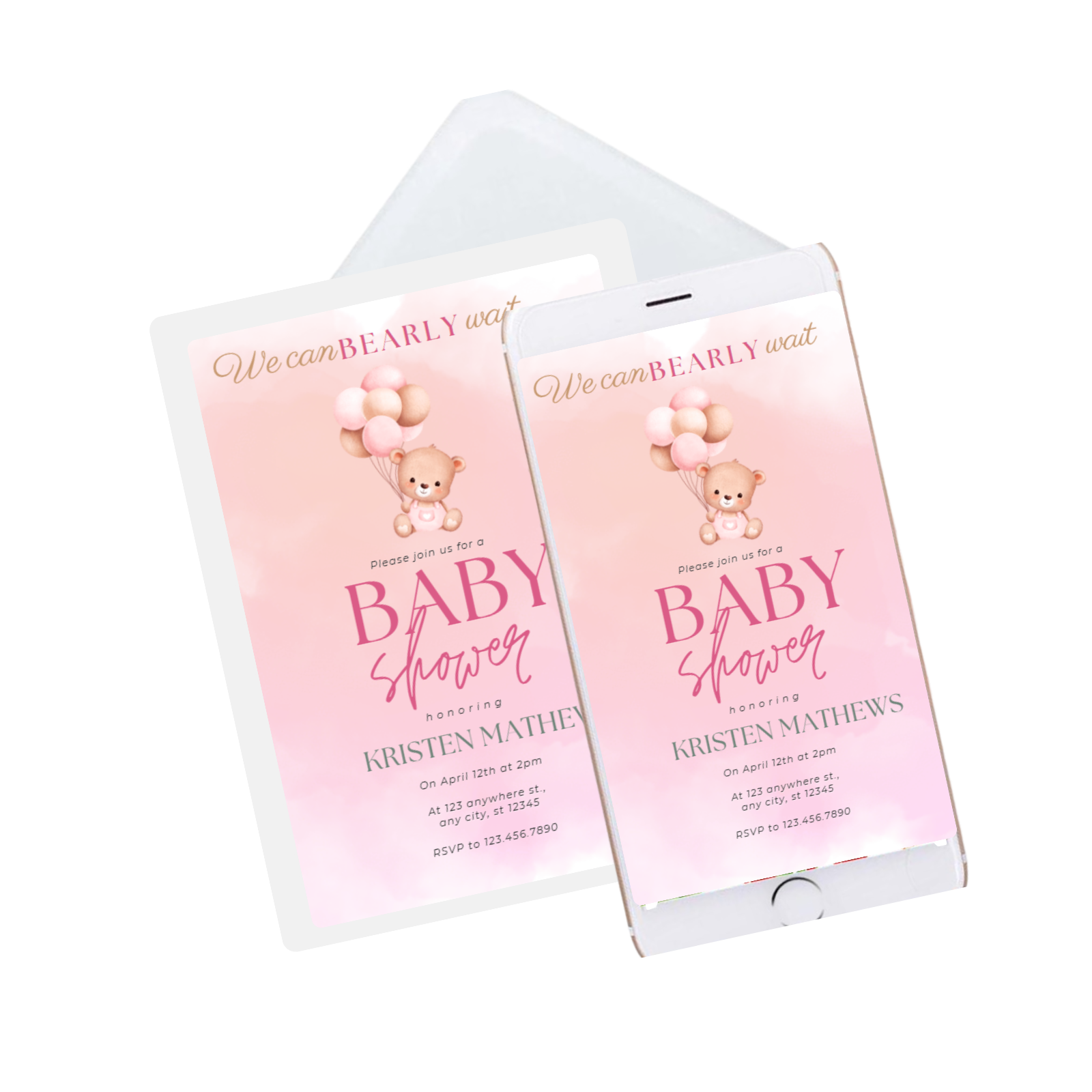 Welcome your little bundle of joy with our Bearly Wait Pink Party Collection, a soft and sweet design perfect for baby showers, first birthdays, and gender reveal celebrations.