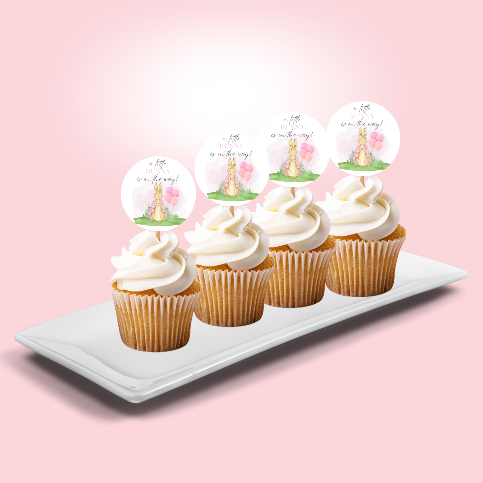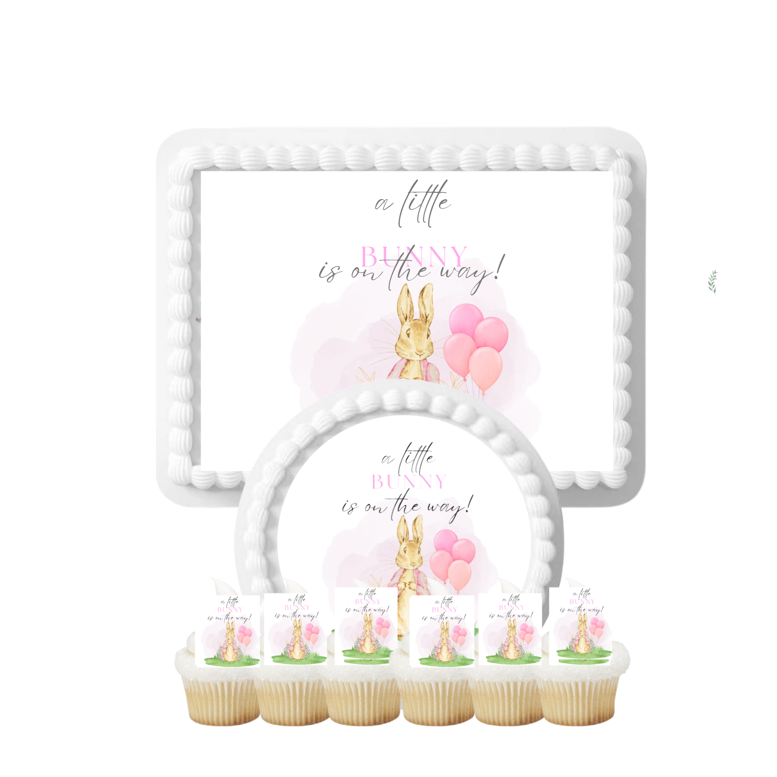 Pink Bunny Rabbit Party Collection | Edible Cake Toppers, Cupcake Picks, Labels & Favor Bags