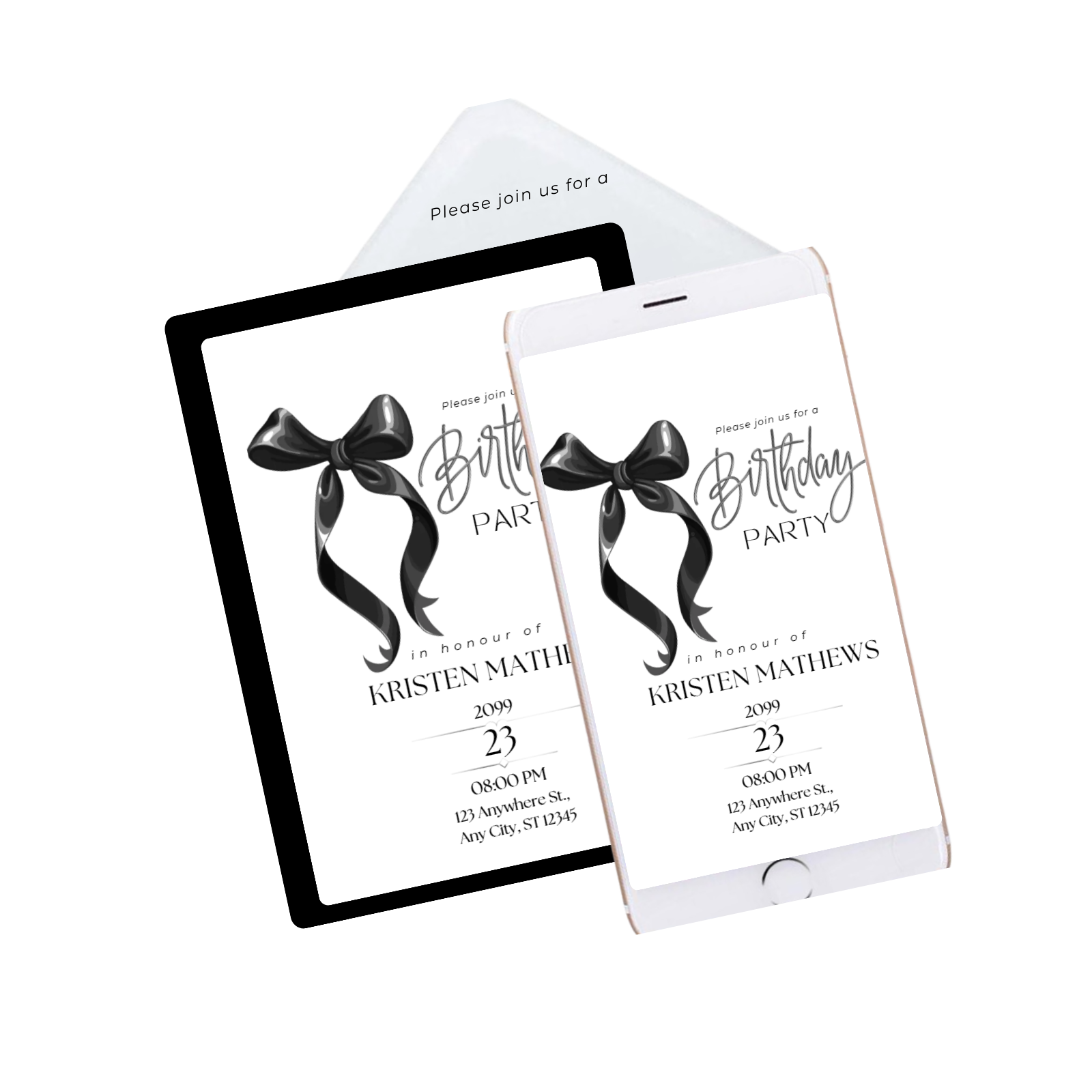 Celebrate in style with our Black Bow Birthday Party Collection, a chic and timeless design perfect for elegant birthdays, luxury events, and black-and-white themed parties.