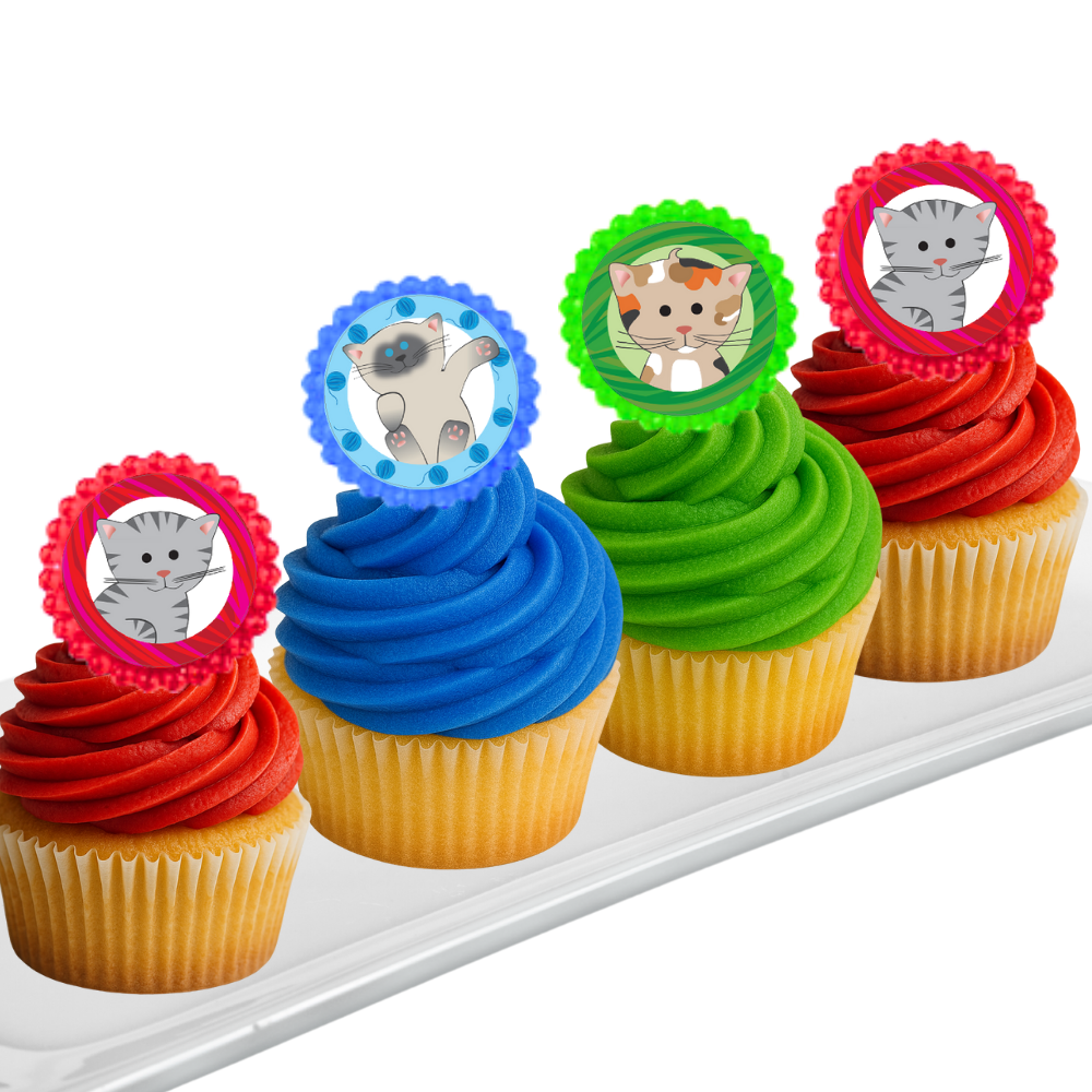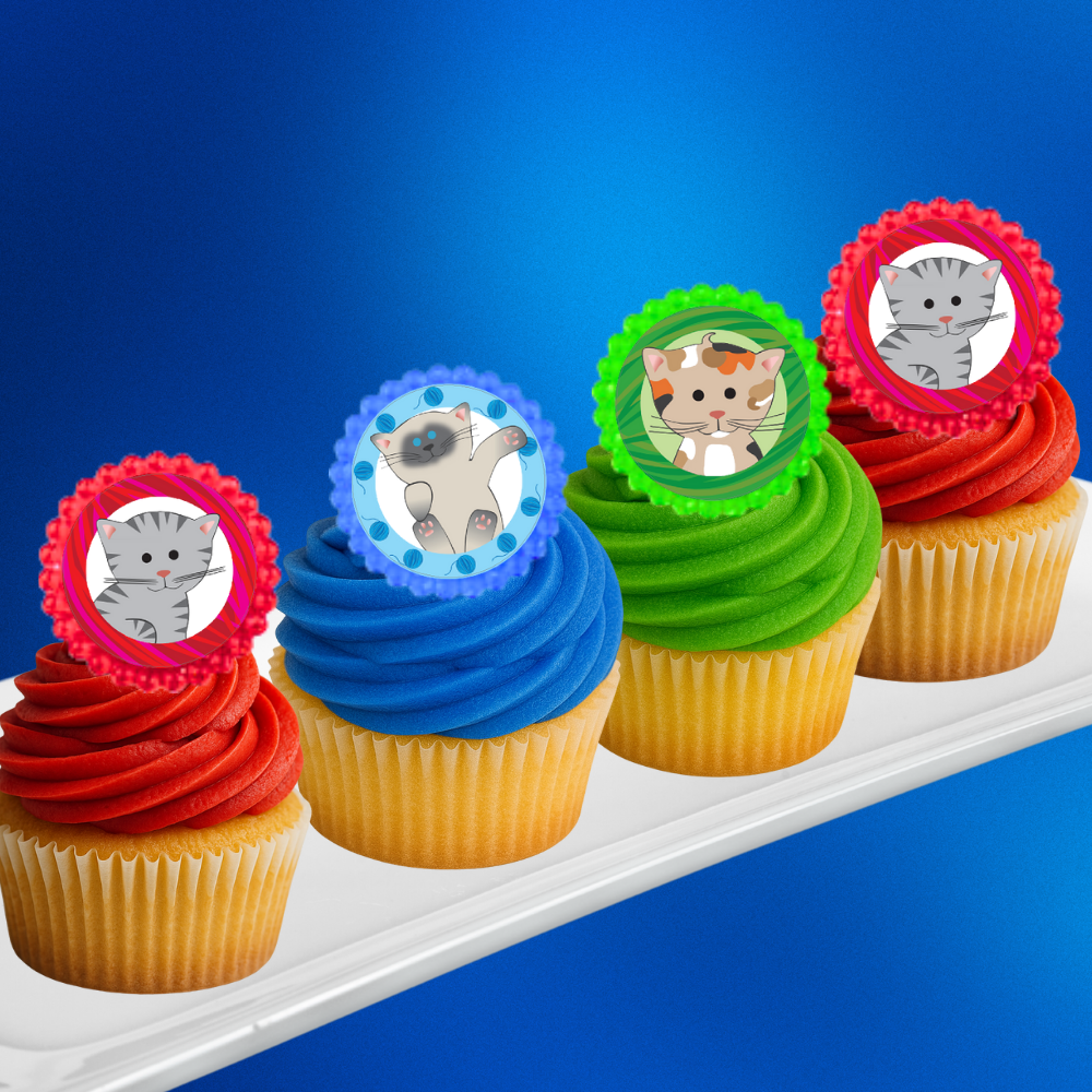 Bring adorable charm to your party treats with the Cute Kitty Kitten Cat Easy Toppers Cupcake Decoration Party Favor Rings – 12pk. Featuring sweet cat faces and playful kitten designs, these toppers instantly turn cupcakes and cookies into eye-catching delights. Perfect for cat-themed birthdays, baby showers, classroom parties, and animal-lover celebrations, they double as fun wearable rings that kids can keep as party souvenirs. Simple, cute, and irresistibly charming, these toppers add the perfect finishing touch to any dessert table.