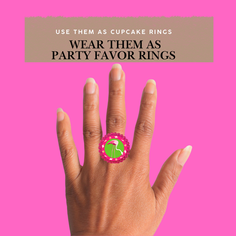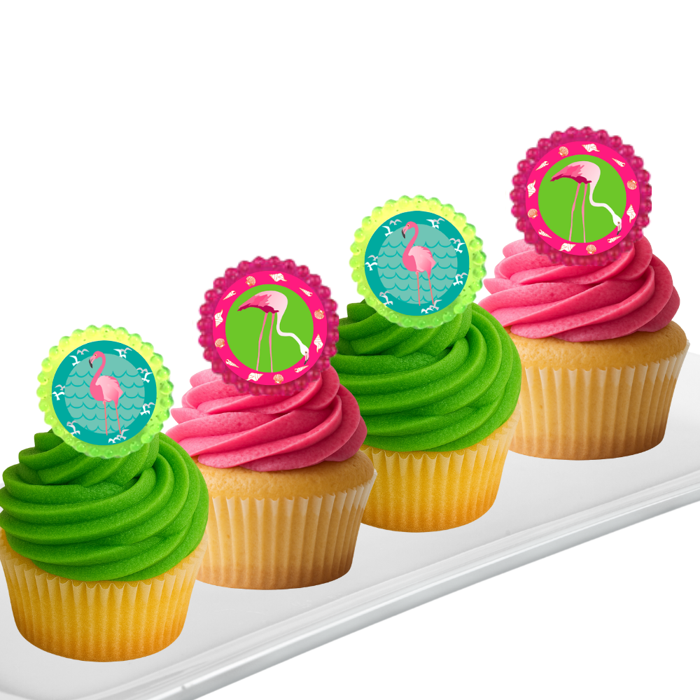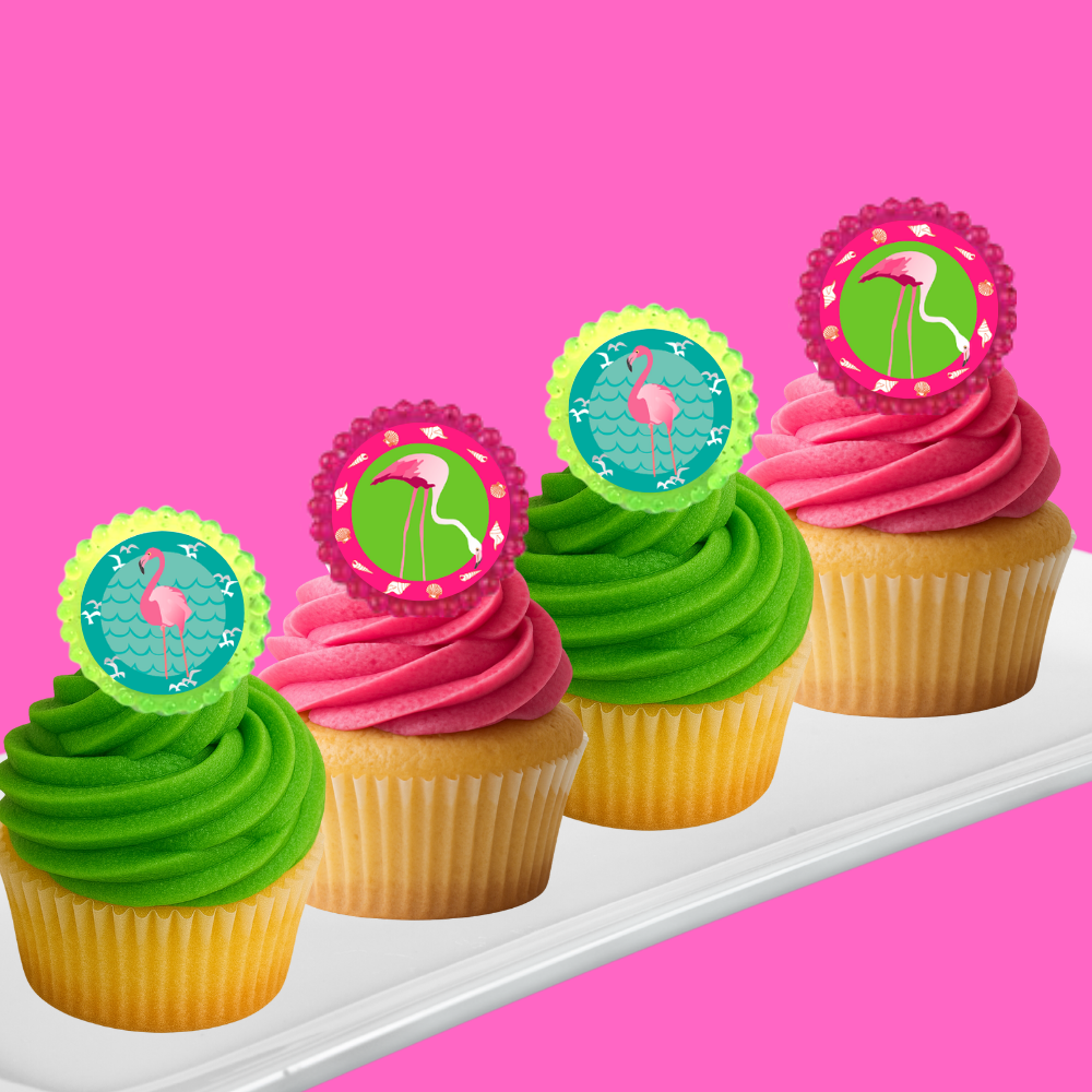 Flamingo Pink Green Easy Toppers Cupcake Decoration Party Favor Rings -12pk