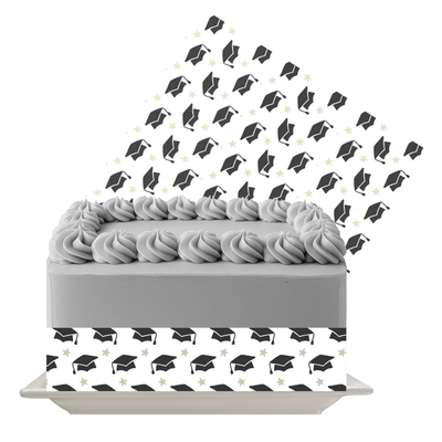 Black Graduation Cap Edible Cake Wrap | Graduation Icing Sheet | Class Celebration Cake Decoration