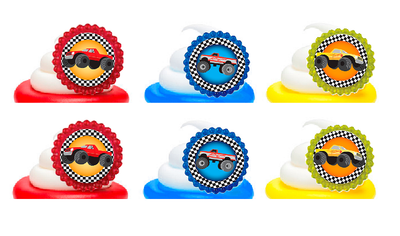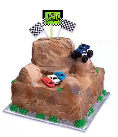 Includes 1 Monster Truck, 2 Checkered Flags and 3 Vehicles and 1 Happy Birthday Plaque. Packaged by the CakeSupplyShop. Cake Decoration Topper Toys
