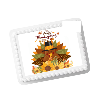 Cute Turkey Thanksgiving Edible Cake Topper – 8x10 Frosting Sheet | Autumn Festive Cake Decoration