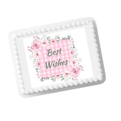 Pink Floral Best Wishes Edible Cake Topper – 8x10 Frosting Sheet | Elegant Celebration Cake Decoration