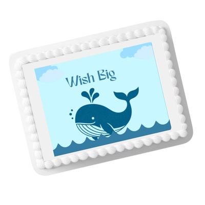 Whale “Wish Big” Edible Cake Topper – 8x10 Frosting Sheet | Ocean & Sea Animal Birthday Decoration