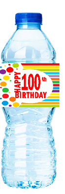 CakeSupplyShop Item#100RWB Happy 100th Birthday Rainbow Water Bottle Labels -15ct
