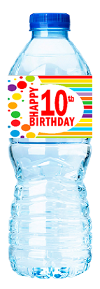 CakeSupplyShop Item#010RWB Happy 10th Birthday Rainbow Water Bottle Labels -15ct