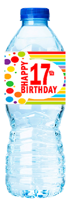 CakeSupplyShop Item#017RWB Happy 17th Birthday Rainbow Water Bottle Labels -15ct