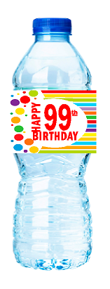 CakeSupplyShop Item#099RWB Happy 99th Birthday Rainbow Water Bottle Labels -15ct