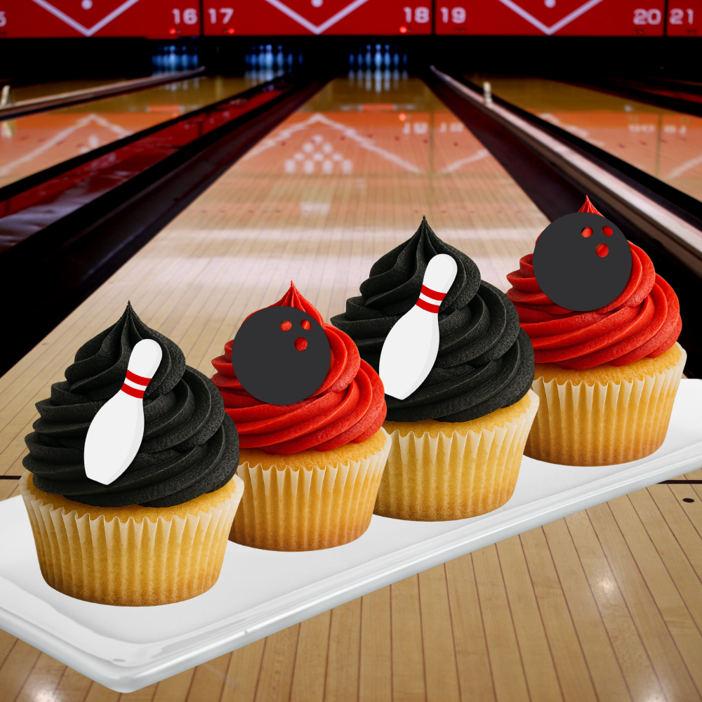 Strike up some fun with these Bowling Edible Cupcake Decoration Toppers! Featuring classic bowling designs such as bowling pins, bowling balls, and lane-inspired graphics, these edible toppers are perfect for turning ordinary cupcakes into winning party treats.