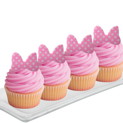 Add a touch of charm and sweetness to your desserts with these Pink Polka Dot Bow Cupcake Toppers. Each topper features a dainty pink bow with white polka dots, perfect for turning simple cupcakes into elegant, picture-perfect treats.