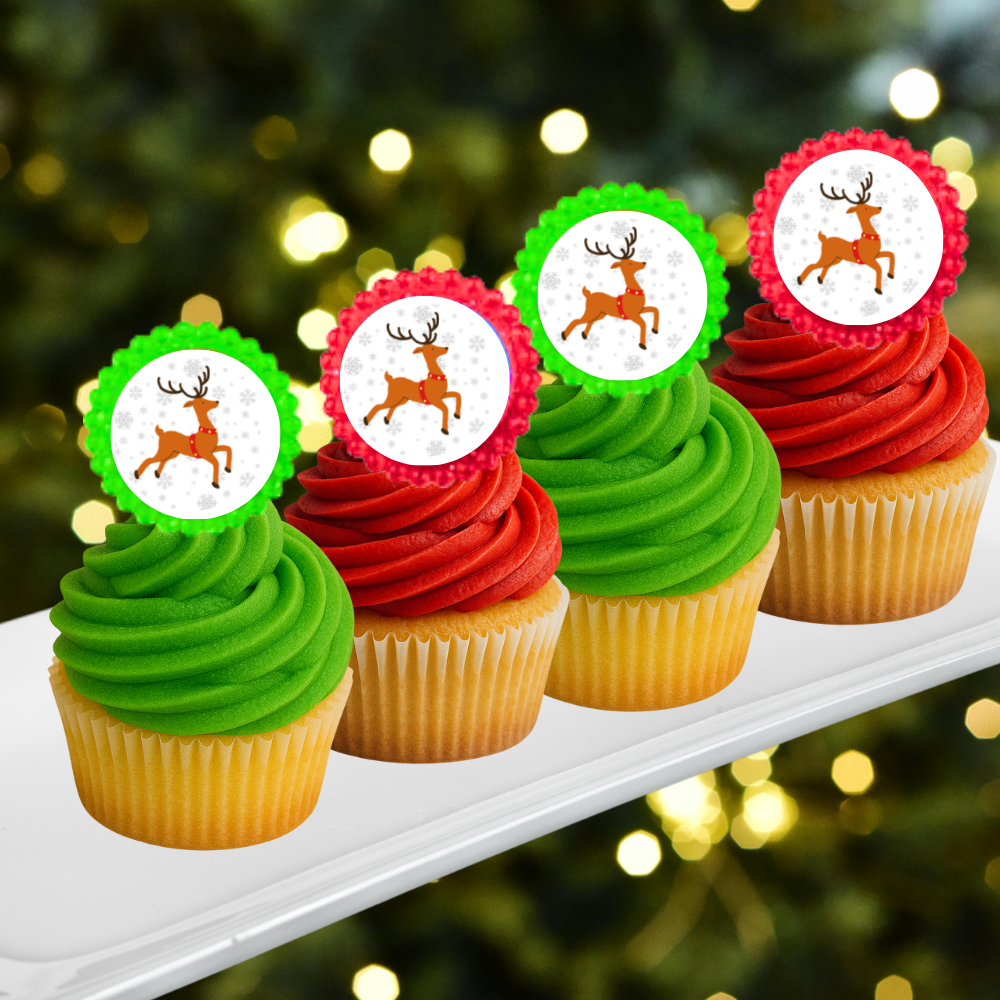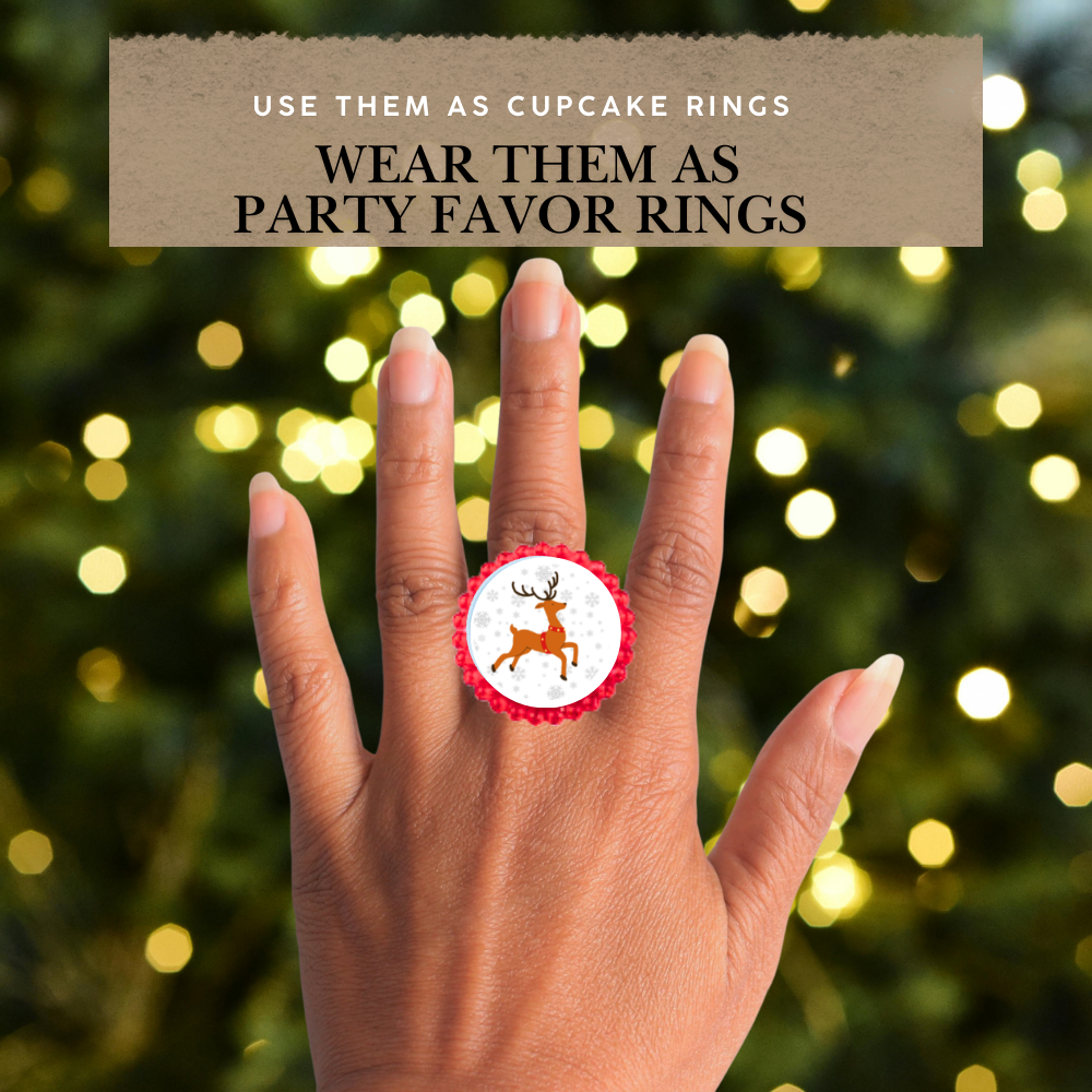 Reindeer Easy Toppers Cupcake Decoration Party Favor Rings – 12pk