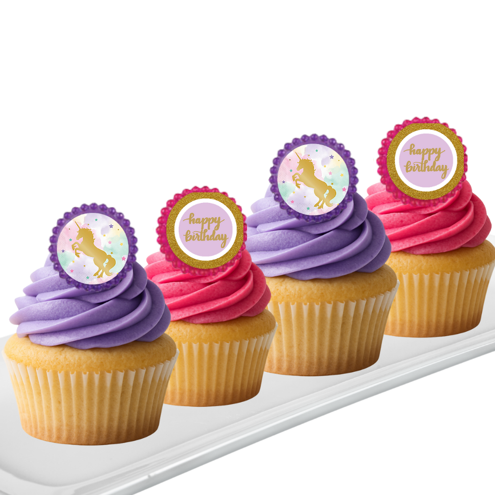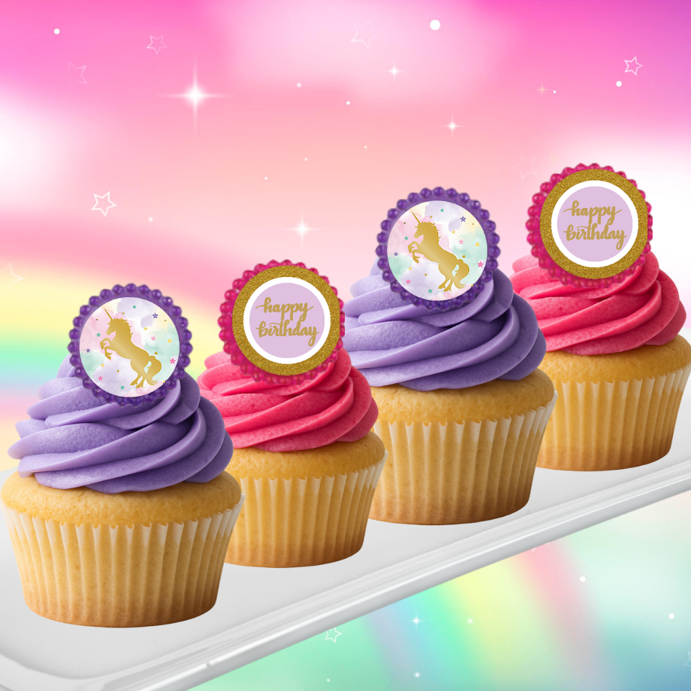 Unicorn Design: Each topper features whimsical unicorn motifs with colorful manes and magical details — ideal for birthdays, fantasy, or unicorn-themed parties.