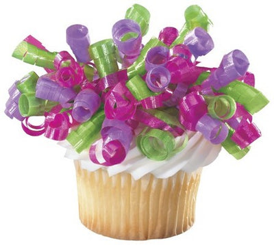 Large 5 Color Bright Curly Ribbon Cupcake - Desert Decoration Topper Picks 12ct