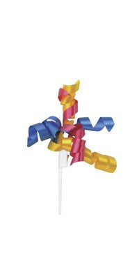 Small 5 Color Bright Curly Ribbon Cupcake - Desert Decoration Topper Picks 12ct