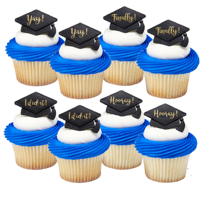 🎓 **Celebrate Your Graduate with Elegance and Sweetness!** 🎓 Introducing our exclusive12ct Graduation Cupcake Decoration Topper Rings - the perfect blend of elegance and festivity to honor this momentous occasion! These charming toppers are designed to add a touch of sophistication and joy to your graduation party, making every bite of your cupcakes a celebration of success. **Why Choose Our Graduation Cupcake Toppers?** - **Unique Design:** Each topper ring features a classic graduation cap design, symbolizing achievement and the bright future ahead. The intricate details and vibrant colors will make your desserts stand out, creating an Instagram-worthy presentation. - **Versatile & Reusable:** Not only do these topper rings add a decorative touch to your cupcakes, but they also double as delightful keepsakes for your guests. Crafted from durable material, they can be reused as ring favors, adding lasting memories to your special day. - **Easy to Use:** Simply insert the topper rings into your cupcakes for an instant decoration upgrade. They’re the perfect size for standard and mini cupcakes, making your dessert table setup a breeze. - **Perfect Quantity:** With 12 topper rings in each pack, you’ll have plenty to decorate a batch of cupcakes for your graduation party, ensuring each guest gets a piece of the celebration. Celebrate your graduate’s achievement with our Graduation Cupcake Decoration Topper Rings and make their graduation party as unforgettable as their journey. Order now and let the sweetness of success fill the air! 🎉🧁