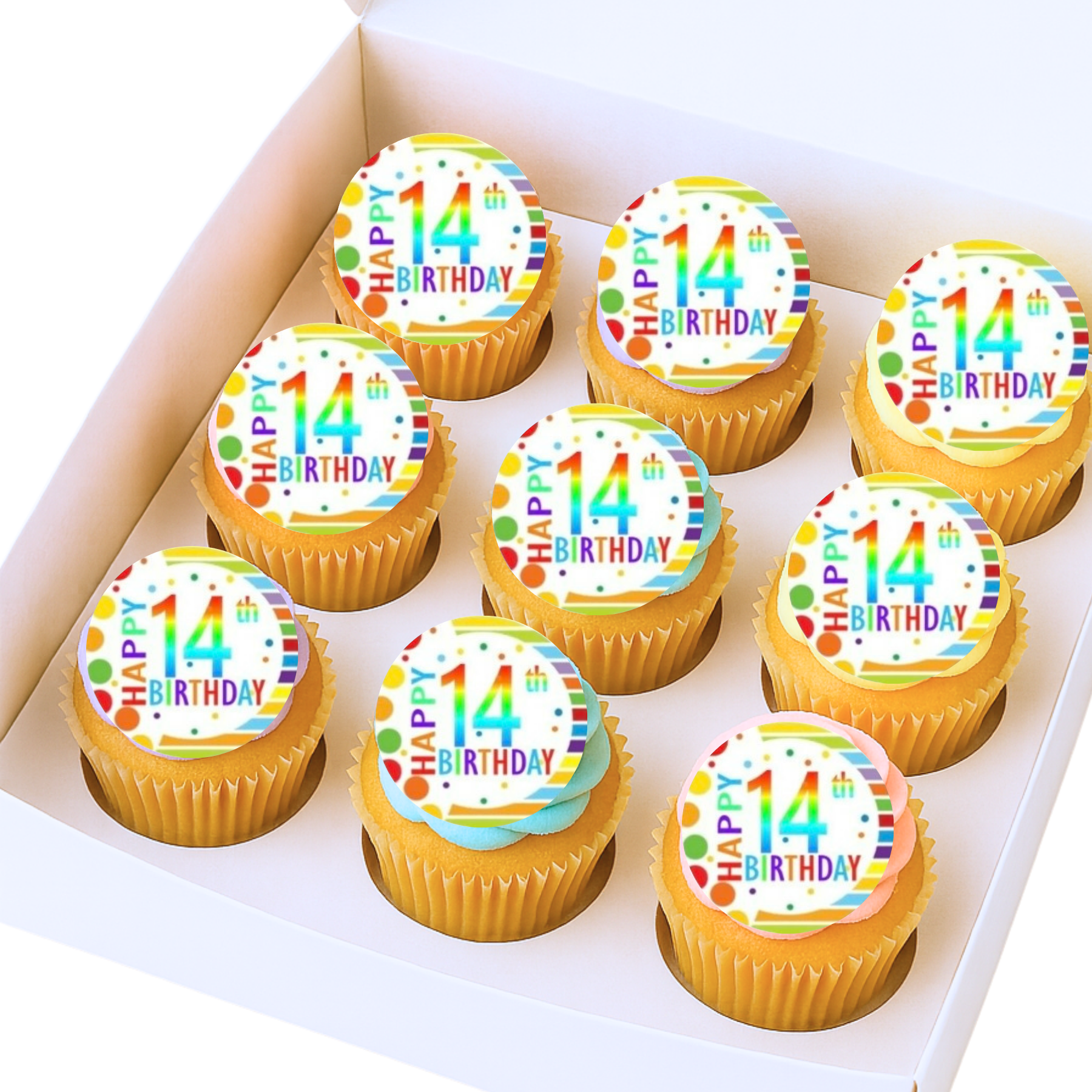 Add a festive touch to a 14th birthday celebration with these Rainbow 14th Birthday Edible Toppers. Featuring bright colors and clear birthday text, they’re perfect for cupcakes, cookies, and party treats, giving desserts a professional and fun finish.