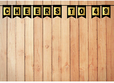 Cheers 49th Brithday Anniversary Black & Mettalic Gold Party Decoration Wall Bunting Banner