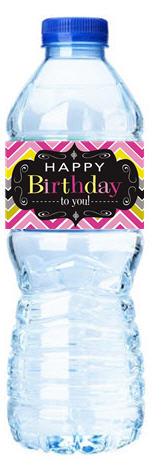 Happy Birthday-Elegant Chevron-Personalized Water Bottle Labels-12pack