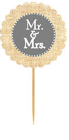Mr & Mrs Gray Rustic Burlap Wedding Cupcake Decoration Topper Picks -12ct
