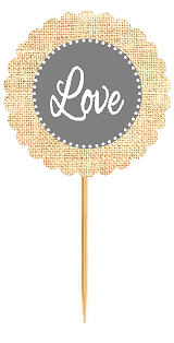 Love Gray Rustic Burlap Wedding Cupcake Decoration Topper Picks -12ct