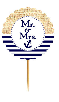 Mr & Mrs Nautical Anchor Rustic Burlap Wedding Cupcake Decoration Topper Picks -12ct