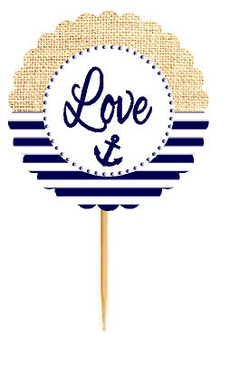 Love Nautical Anchor Rustic Burlap Wedding Cupcake Decoration Topper Picks -12ct